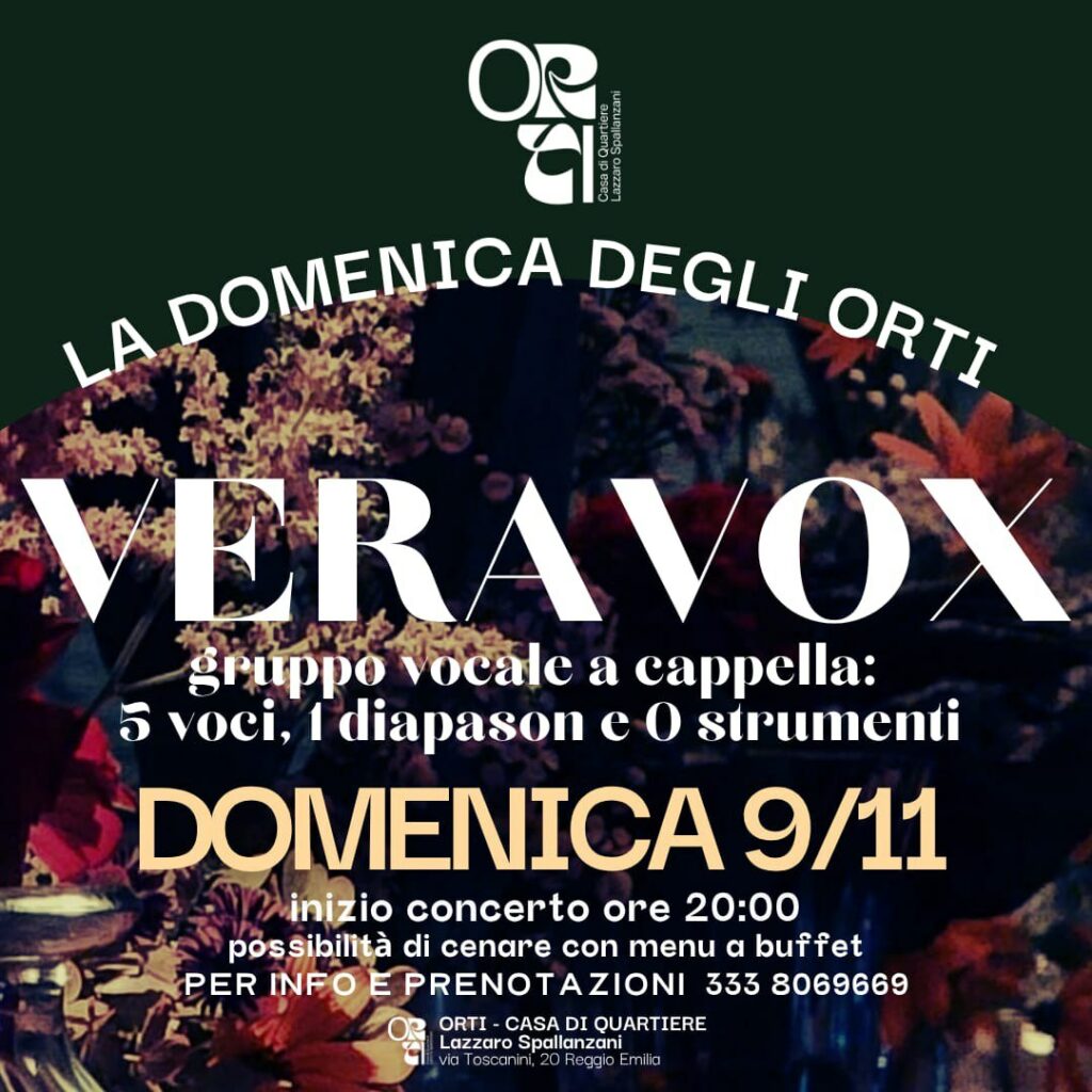 Live alla “Domenica degli Orti”, una cena concerto. Dopotutto, cos’è la felicità? Ascoltare i Veravox mentre mangi.